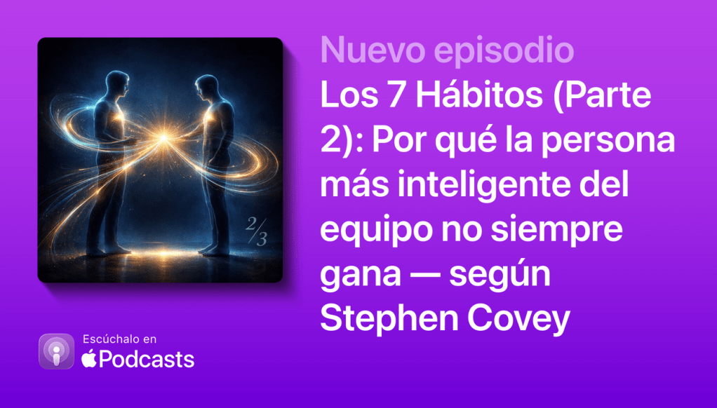 Segundo episodio de la serie sobre «Los 7 Hábitos de la Gente Altamente Efectiva» de Stephen Covey. Hoy: La Victoria Pública — los tres hábitos que transforman tus relaciones. Un episodio ideal para escuchar mientras conduces.